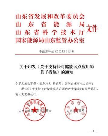 近期,山東省發(fā)展和改革委員會、山東省能源局、山東省科學技術(shù)廳、國家能源局山東監(jiān)管辦公室等四部門聯(lián)合發(fā)布關(guān)于印發(fā)《關(guān)于支持長時儲能試點應(yīng)用的若干措施》(簡稱《若干措施》)的通知,該政策是全國首個省級針對長時儲能的支持政策。